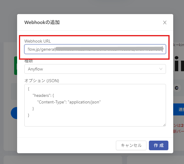 「Webhook URLインプット」に「Webhook URL」をペーストし、作成ボタンをクリックしてください。