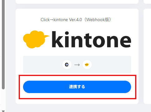 『Clickデータベースからkintone』または『kintoneからClickデータベース』どちらかを選択し、〔連携する〕をクリックしてください。