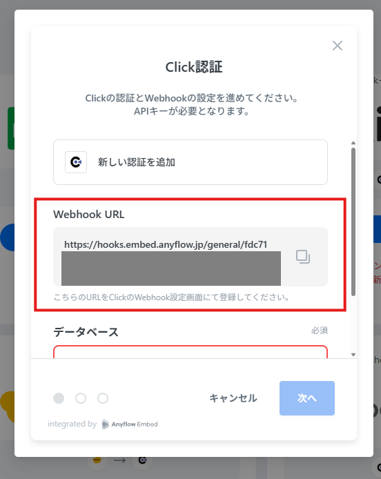 〔新しい認証を追加〕をクリックし、取得済みのClickのAPIキーを入力してください。