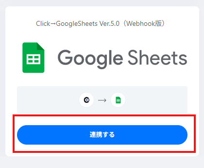 『ClickデータベースからGoogleスプレッドシート』を選択し、〔連携する〕をクリックしてください。