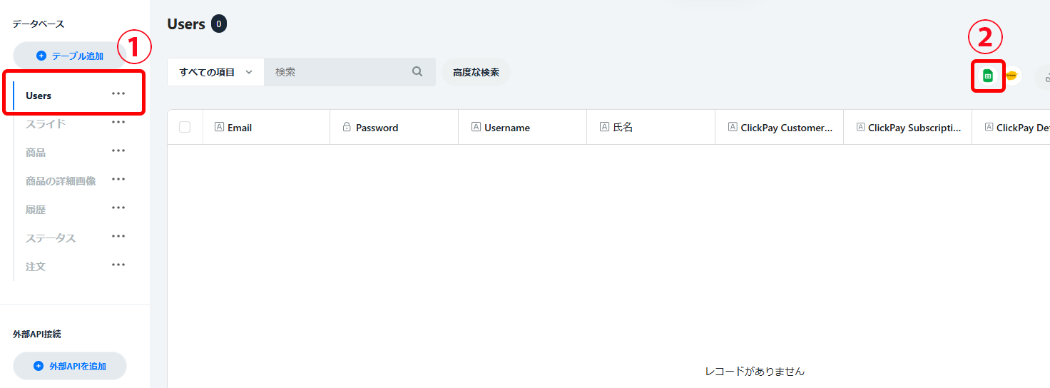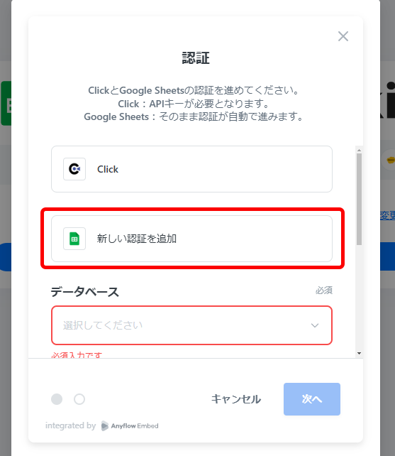 3.ClickデータベースとGoogleスプレッドシートを連携