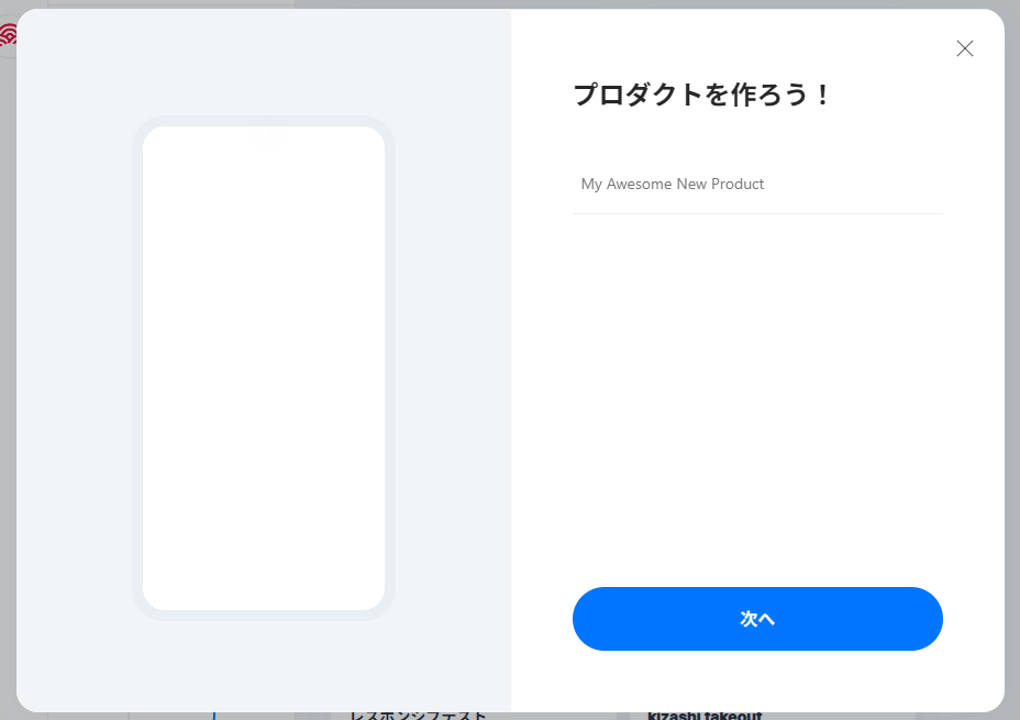 プロダクト名を入力し、 「次へ」ボタン をクリックします。