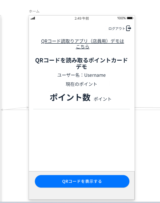 ここでは、QRコードをスキャンし、ポイントを付与するページの作成を説明します。