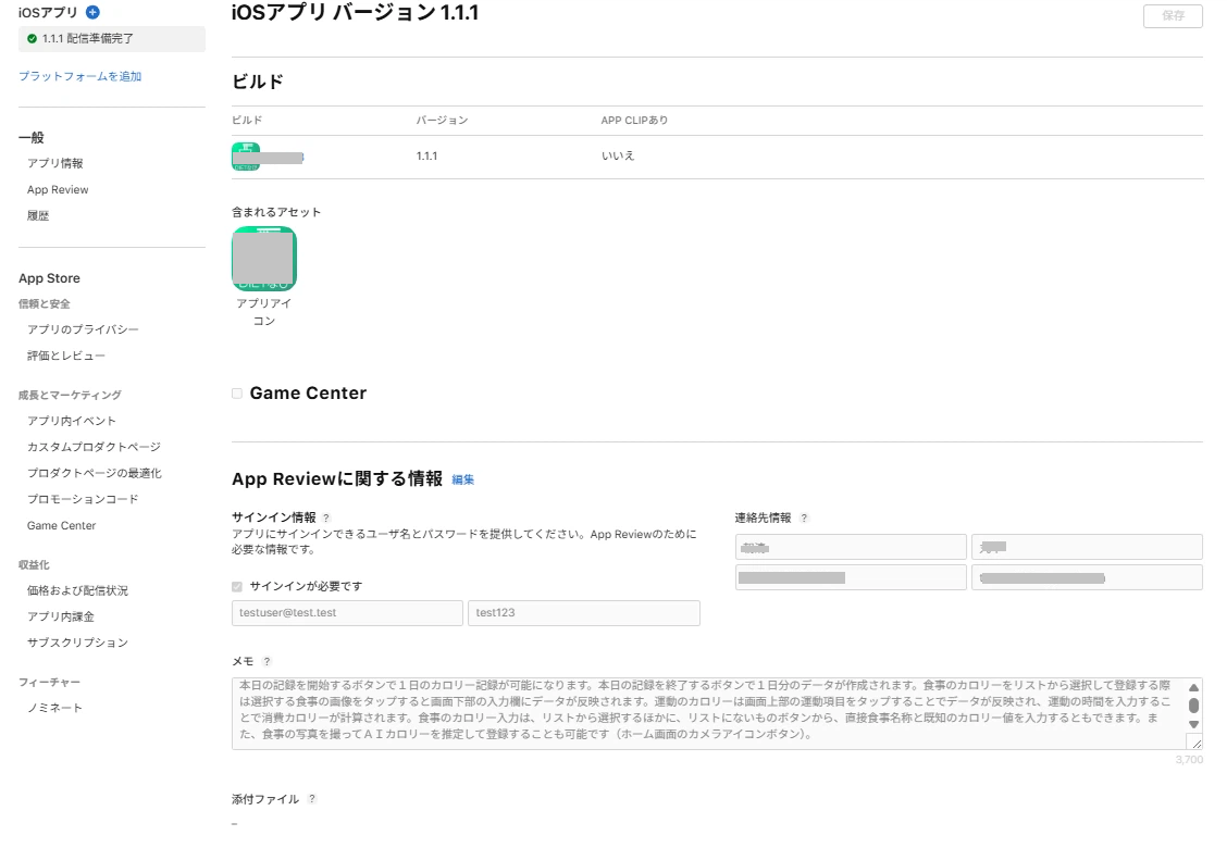 アプリの審査官に向けての情報をここに入力します。