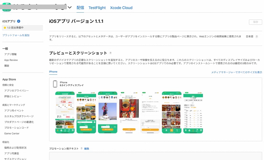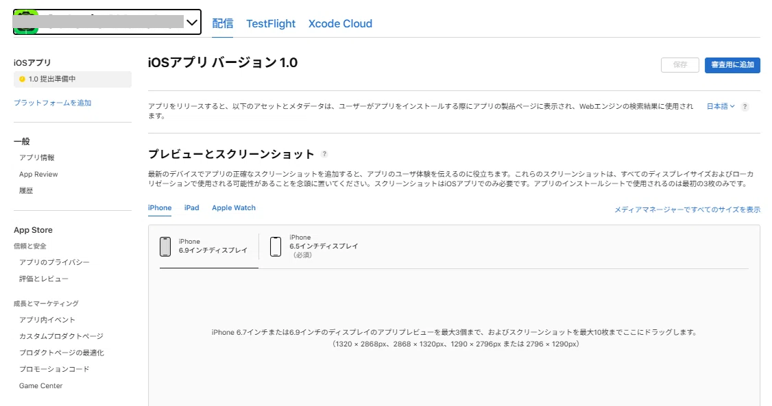 申請では6.5インチ画面のスクショが必須です。手持ちのiPhoneは6.5インチでない場合は画像編集ソフトでサイズを調整してアップロードしても問題ありません。