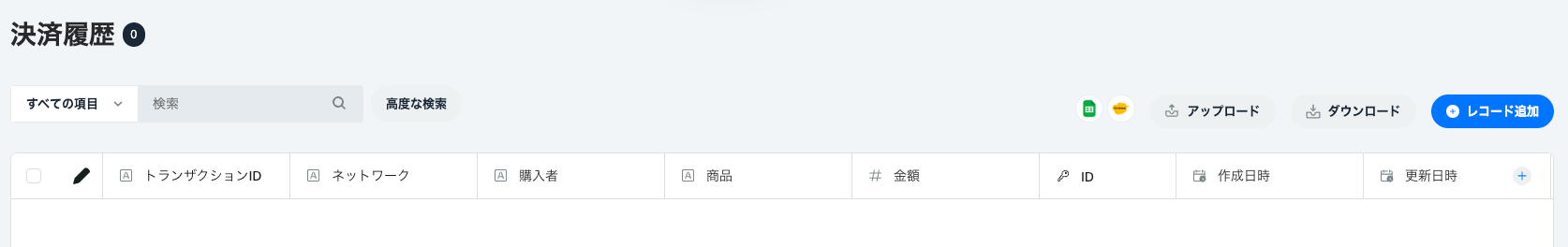 決済完了時に、「決済履歴」にデータを追加するロジックを入れます。