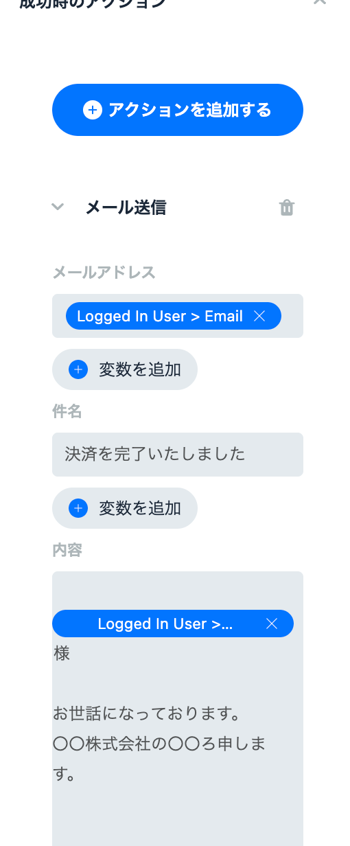 (例)決済が成功した際に、自動でメールを送信する処理を追加する。