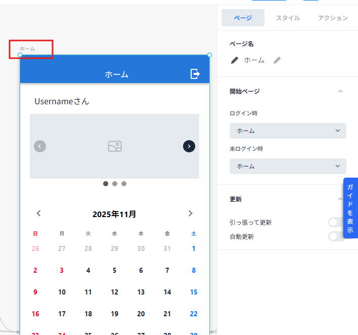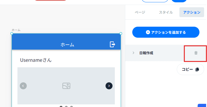 4.ページに不要なアクションが設定されている場合は、削除してください。