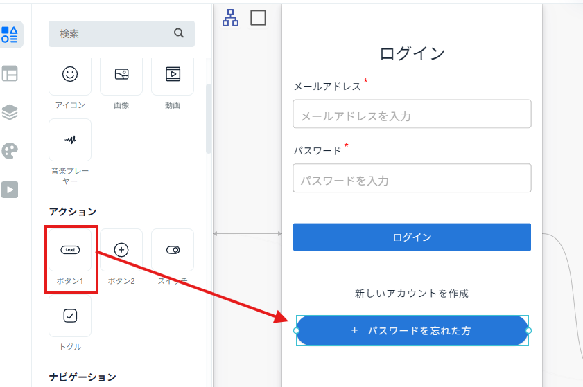 ログインページにパスワードリセット用のテキストやボタンを配置します。